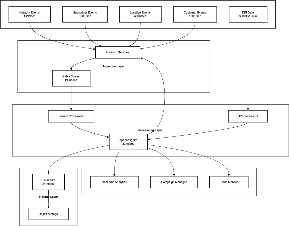 In the telecommunications industry, the ability to process and analyze data in real-time can mean the difference between proactive customer service and missed opportunities. This blog series details our journey in building a real-time data platform capable of processing 2.5 million events per second and handling 350GB of Deep Packet Inspection (DPI) data every 15 minutes for a major telecommunications provider.