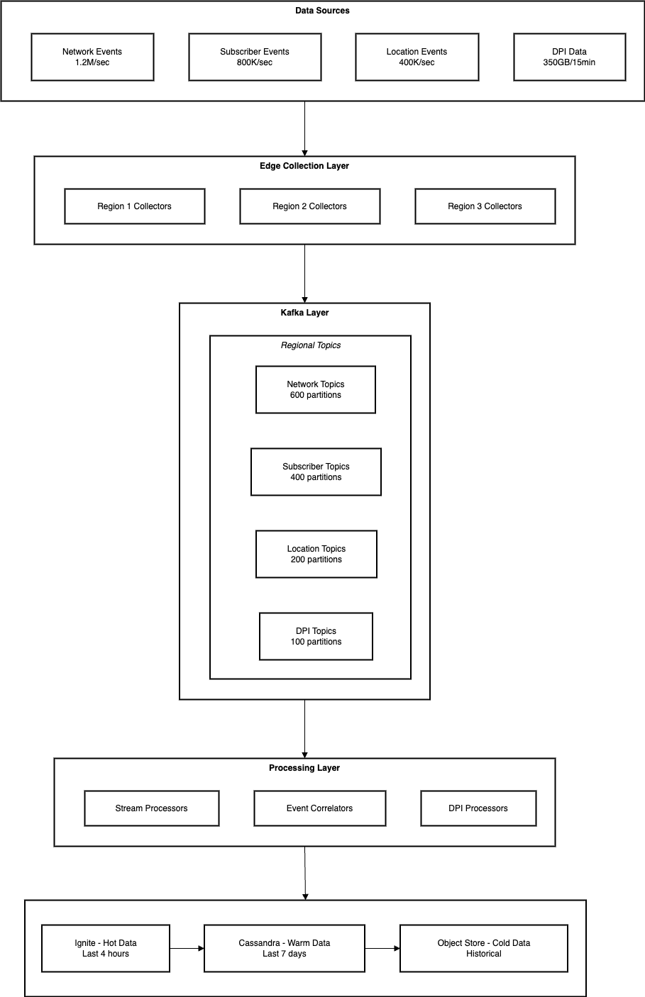In Part 1 of this series, we introduced our telecommunications data platform that processes 2.5 million events per second and handles 350GB of DPI data every 15 minutes. Today, we’ll dive deep into how we designed and implemented the data partitioning strategy and managed the massive data flow through the system.